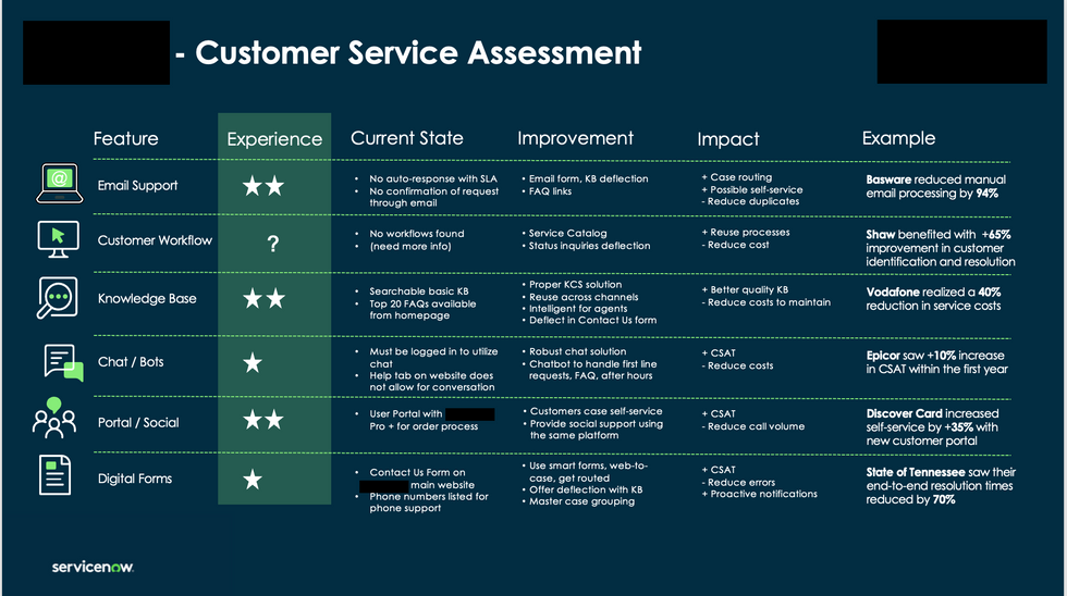 As part of a business development initiative, I prospected into a net-new account with the goal of identifying opportunities to improve their customer service operations. To generate interest and uncover pain points, I created and distributed custom customer service assessments designed to evaluate key service metrics and highlight areas for improvement. This campaign was able to gain traction and start meaningful conversations within the organization around how we could address gaps in service quality.